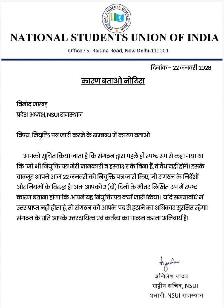 भारतीय राष्ट्रीय कांग्रेस के छात्र और युवा संगठन—नेशनल स्टूडेंट्स यूनियन ऑफ इंडिया (NSUI) और भारतीय युवा कांग्रेस—इन दिनों संगठनात्मक अनुशासन, निर्णय प्रक्रिया और सक्रिय नेतृत्व को लेकर एक संवेदनशील दौर से गुजर रहे हैं। संगठन के भीतर नोटिस जारी करना, कार्यकारिणी भंग करना और पदाधिकारियों को कारण बताओ नोटिस देना जैसी घटनाएं सामने आई हैं, जिससे यह स्पष्ट होता है कि संगठन अपने कार्यशैली पर नियंत्रण के साथ-साथ स्वच्छ और सक्रिय नेतृत्व को सख्ती से परखना चाहता है।