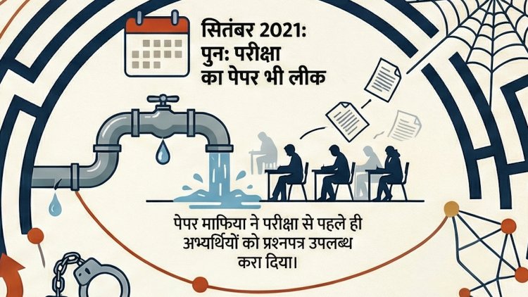 राजस्थान JE भर्ती परीक्षा में पेपर लीक का बड़ा खुलासा। SOG जांच में सामने आया कि दिसंबर 2020 में निरस्त परीक्षा के बाद 12 सितंबर 2021 की पुनः परीक्षा का प्रश्नपत्र भी लीक हुआ था। संगठित गिरोह, करोड़ों की वसूली और PWD अधिकारी तक जांच के घेरे में।