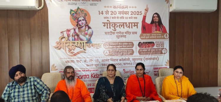 सूरतगढ़। दिव्य ज्योति जाग्रति संस्थान द्वारा आयोजित सात दिवसीय श्रीकृष्ण कथा महोत्सव का शुभारंभ 14 नवंबर से होगा। कथा प्रतिदिन शाम 7 बजे से रात 10 बजे तक आयोजित की जाएगी। यह कथा गोकुलधाम ढाब, गणेश मंदिर के पास आयोजित होगी। कथा से एक दिन पूर्व 13 नवंबर को भव्य मंगल कलश यात्रा निकाली जाएगी, जो आनंद विहार कॉलोनी से सुबह 10 बजे प्रारंभ होकर शहर के विभिन्न मार्गों से होती हुई कथा स्थल पर पहुंचेगी।