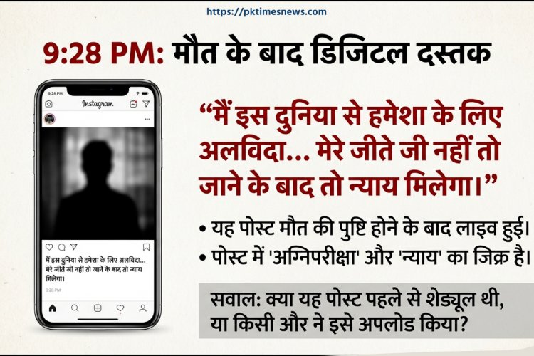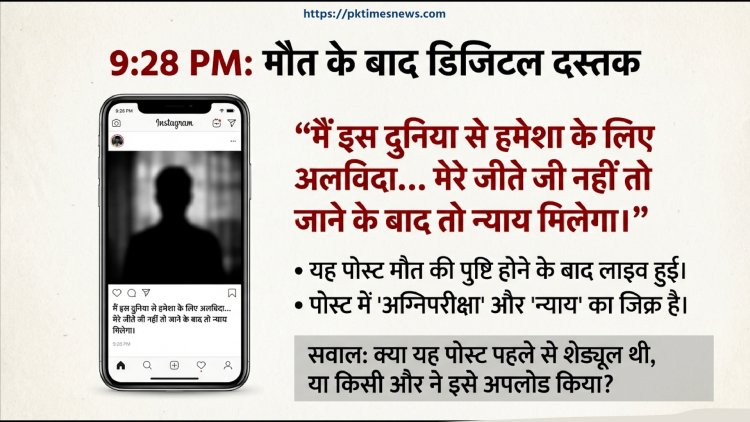 मौत के बाद इंस्टाग्राम पर प्रकाशित पोस्ट ने डिजिटल हेरफेर की आशंका को जन्म दिया है। पोस्ट में ‘न्याय’ और ‘अग्निपरीक्षा’ जैसे शब्दों ने जांच एजेंसियों की चिंता बढ़ा दी है।