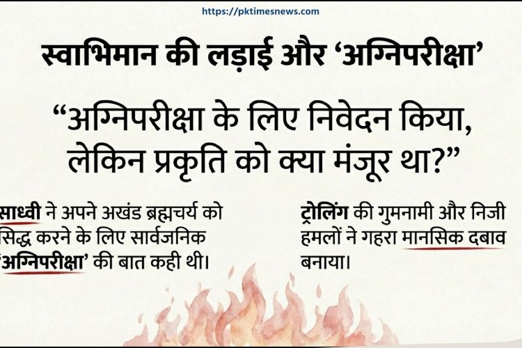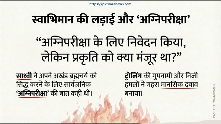 इस इमेज में साध्वी प्रेम बाईसा द्वारा सार्वजनिक रूप से ‘अग्निपरीक्षा’ की बात कहने और इसके बाद बढ़े मानसिक तनाव को दर्शाया गया है, जिसने पूरे मामले को सामाजिक बहस का विषय बना दिया।