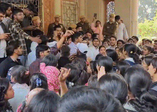 राजस्थान की राजधानी जयपुर स्थित राजस्थान यूनिवर्सिटी (RU) में गुरुवार दोपहर छात्रों के शांतिपूर्ण प्रदर्शन पर पुलिस ने बर्बर लाठीचार्ज कर दिया। इस घटना में कई छात्र घायल बताए जा रहे हैं, जबकि छात्र नेता शुभम रेवाड़ को हिरासत में ले लिया गया।